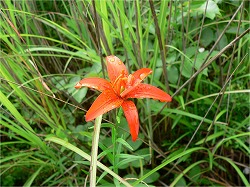 | 香川県では1999年から5年間をかけて、香川県内に生息・生育する絶滅の恐れのある野生生物の実態調査を行いました。香川県では、 シダ植物以上の高等植物として1726種の在来植物が自生しています(1996年現在;久米による)が、調査の結果から、396種もの植物が 絶滅の恐れのある野生植物として、「香川県レッドデータブック」に掲載されました。 香川県の絶滅危惧植物の多くは里山を生育地としている植物で、かっては普通に見られた植物です。そのなかから環境省が2007年に発表した改定レッドデータリストにも掲載されている植物のいくつかを紹介します。 香川県の丘陵部から山地部のアカマツやコナラの二次林の林床には、エビネやナンカイアオイなどが生育しています。環境省はエビネを準絶滅危惧(NT)、ナンカイアオイを絶滅危惧Ⅱ類(VU)としています。ナンカイアオイと近縁のミヤコアオイは香川県のレッドリストでは、準絶滅危惧(NT)とされています。両種の間で、地域的なすみわけが見られます。 香川県には多くの農業用ため池がありますが、そこにも多くの絶滅の恐れのある水草が生育しています。オニバス(VU)はおもに平野部のため池に生育していますが、ガガブタ(NT)は中山間部のため池にも生育しています。また、良く草刈りなどの管理がされたため池の土手は在来植物の多い草地になりますが、そこにはキキョウ(VU)やスズサイコ(NT)などが生育します。 香川県内の限られた草地には、ヒメユリ(絶滅危惧ⅠB類:EN)やキビヒトリシズカ(VU)が生育することもあります。讃岐山脈には、昔は薪炭(しんたん)林(りん)として利用されていた二次林がよく見られます。伐採されなくなって何年もたち、良く発達した落葉広葉樹林となっています。そこでは、ヤマシャクヤク(NT)やアワコバイモ(VU)などのような温帯性の植物が生育しています。 このほか、小豆島の集塊岩地帯には、ショウドシマレンギョウ(EN)やミセバヤ(EN)などのような小豆島固有の植物も生育しています。